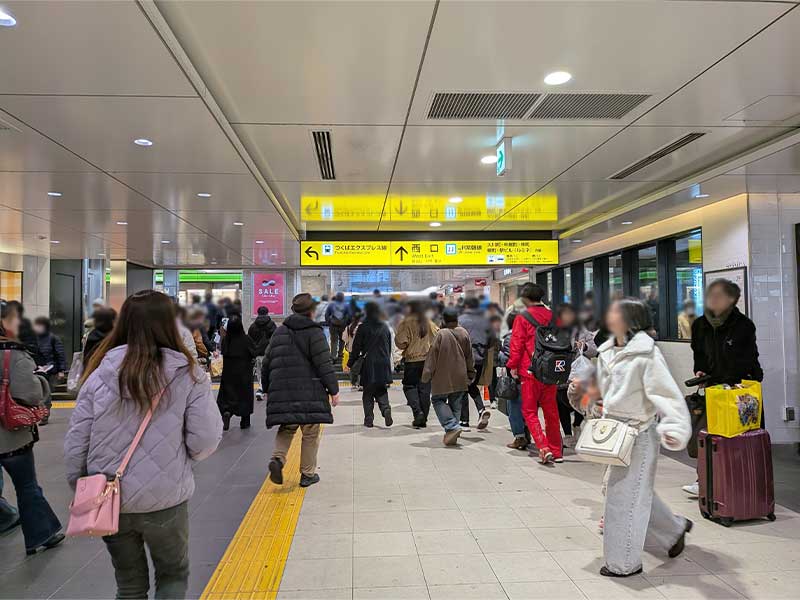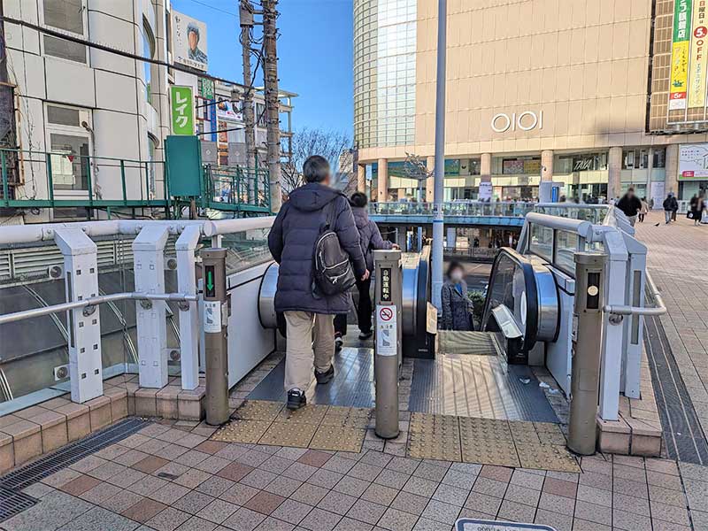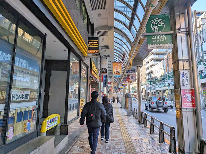 エスカレーターを降りたら、左手に見える商店街の方へお進みください。