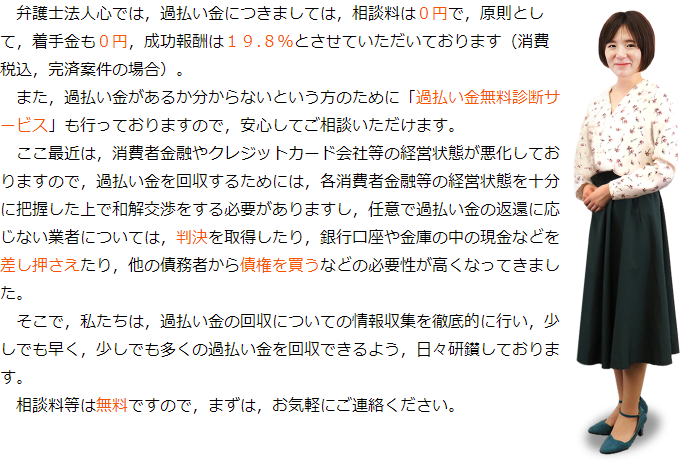 過払い金があるかもしれないとお思いの方は、当法人の過払い金無料診断サービスをご利用ください。